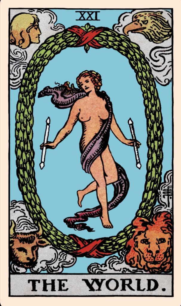 If loose ends remain, The World card asks you to bring them to completion. Doing so will clear the space for new beginnings and opportunities to emerge.