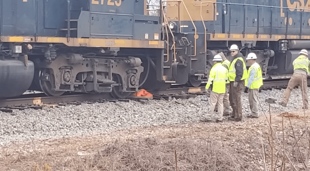 Former Y123 locomotive 2725 front axle rerail at Coastal Lumber Attempt 2 with locomotive 4227 from train L250