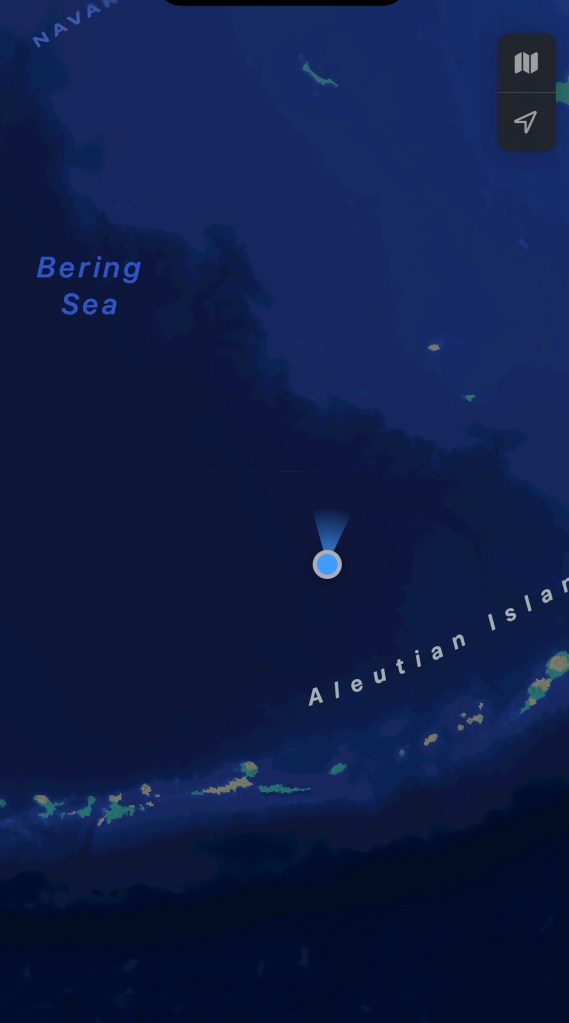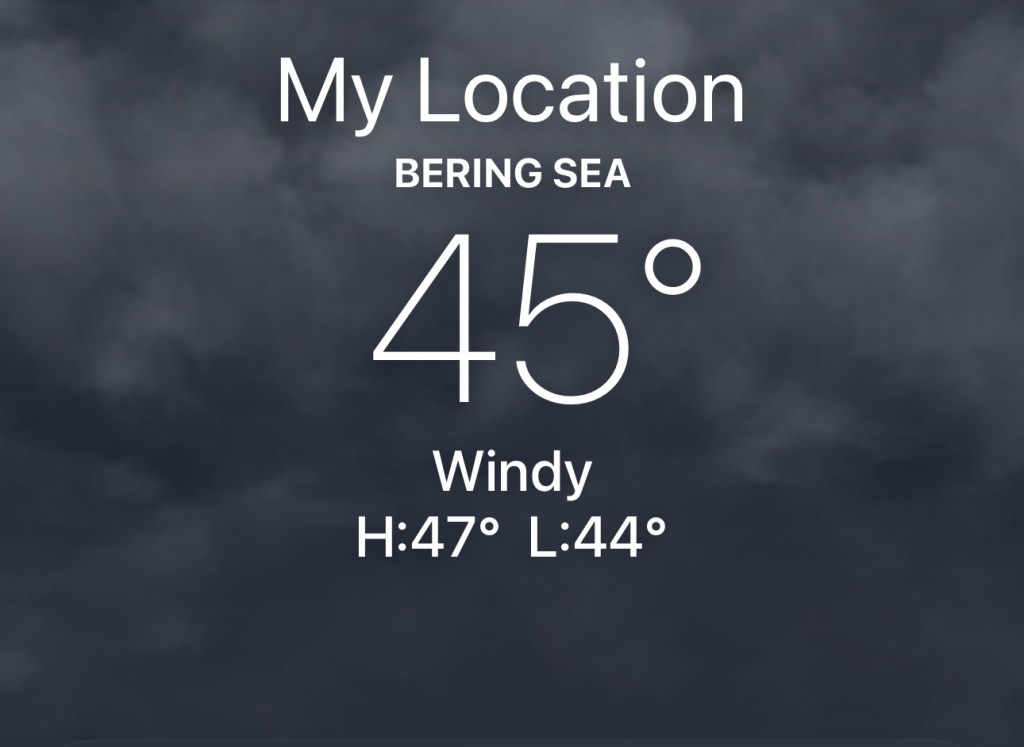 The Bering Sea is one of the most dangerous bodies of water in the world. There are three main reasons for this; shallow depth, volatile weather, and extremely cold sea temperatures. Water temperatures on the surface average from 34° F (1° C) in the north to 41° F (5° C) in the south. The period without frosts lasts for about 80 days in the northern part of the sea, where snow is common even in the summer and maximum temperatures are only 68° F (20° C). The depths average 35 fathoms (about 200′) which means the waves are shorter and pack more power than deep sea waves.