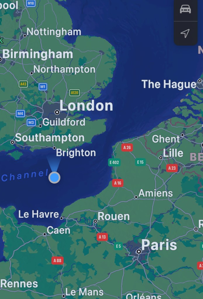 The Strait of Dover or Dover Strait(French: Pas de Calais French pronunciation: [pɑ d(ə) kalɛ] – Strait of Calais),[1] is the strait at the narrowest part of the English Channel, marking the boundary between the Channel and the North Sea, and separating Great Britain from continental Europe. The shortest distance across the strait, at approximately 20 miles (32 kilometres), is from the South Foreland, northeast of Dover in the English county of Kent, to Cap Gris Nez, a cape near to Calaisin the French département of Pas-de-Calais. Between these points lies the most popular route for cross-channel swimmers.[2] The entire strait is within the territorial waters of France and the United Kingdom, but a right of transit passage under the United Nations Convention on the Law of the Seaallows vessels of other nations to move freely through the strait.