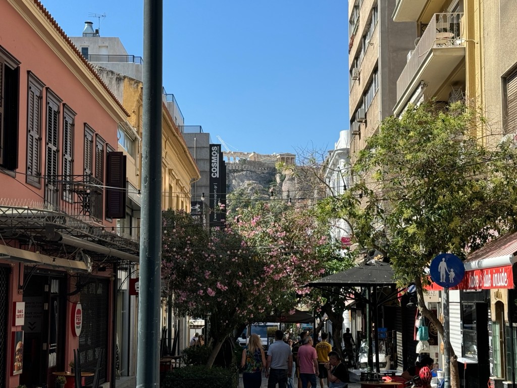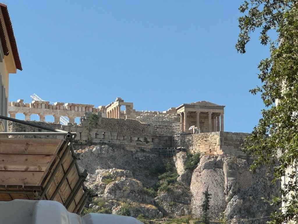 The Acropolis of Athens (Ancient Greek: ἡ Ἀκρόπολις τῶν Ἀθηνῶν, romanized: hē Akropolis tōn Athēnōn; Modern Greek: Ακρόπολη Αθηνών, romanized: Akrópoli Athinón) is an ancient citadel located on a rocky outcrop above the city of Athens, Greece, and contains the remains of several ancient buildings of great architectural and historical significance, the most famous being the Parthenon. The word Acropolisis from the Greek words ἄκρον(akron, “highest point, extremity”) and πόλις (polis, “city”).[1] The term acropolis is generic and there are many other acropoleis in Greece. During ancient times the Acropolis of Athens was also more properly known as Cecropia, after the legendary serpent-man Cecrops, the supposed first Athenian king.