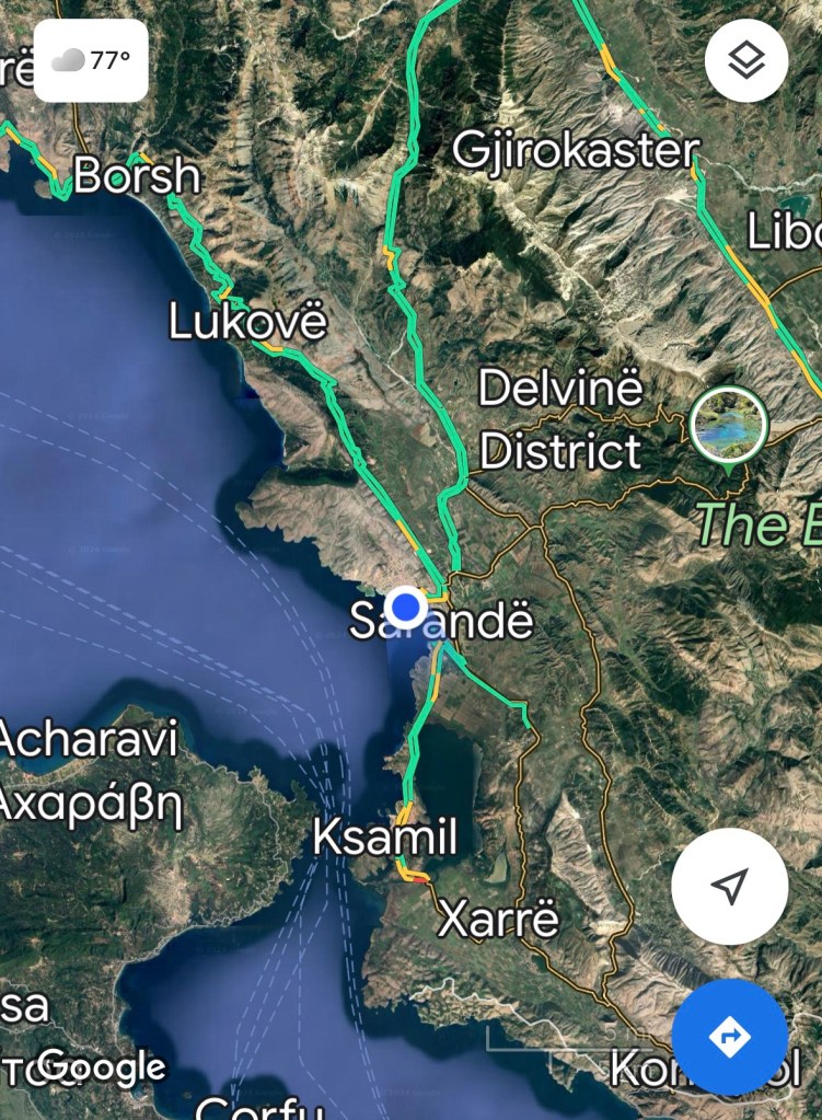 Sarandë is a resort on the Albanian Riviera, in southern Albania. Sandwiched between the Ionian Sea and hills of olive groves, the town is on a horseshoe-shaped bay, edged by beaches and a promenade. In the center are the archaeological remains of a 5th-century synagogue, later an early Christian basilica. Intricate floor mosaics are still evident. The 16th-century Lëkurësi Castle is on a hilltop above the town.