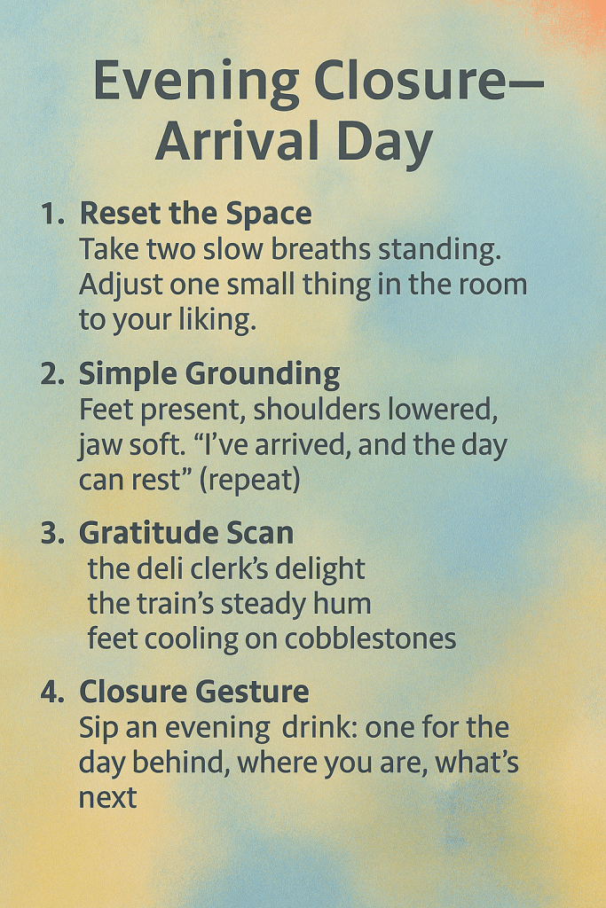 Repeat quietly: “I’ve arrived, and the day can rest.”